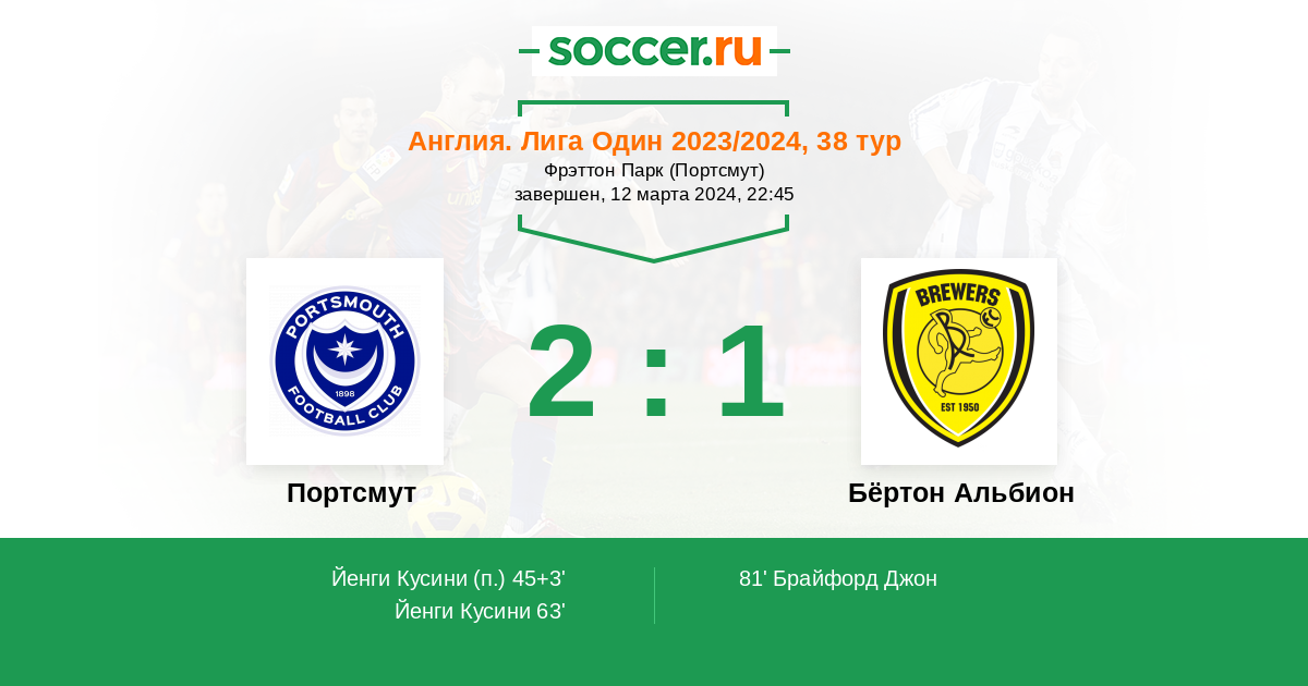 Портсмут - Бёртон Альбион: обзор матча 12 марта 2024