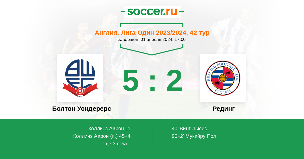 Болтон Уондерерс - Рединг: обзор матча 1 апреля 2024