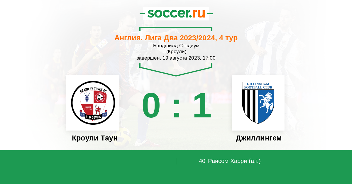 Кроули Таун - Джиллингем: обзор матча 19 августа 2023