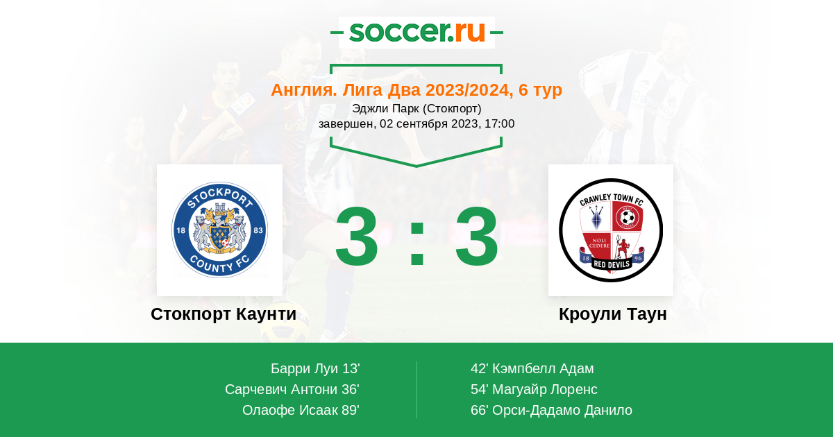 Стокпорт Каунти - Кроули Таун: обзор матча 2 сентября 2023
