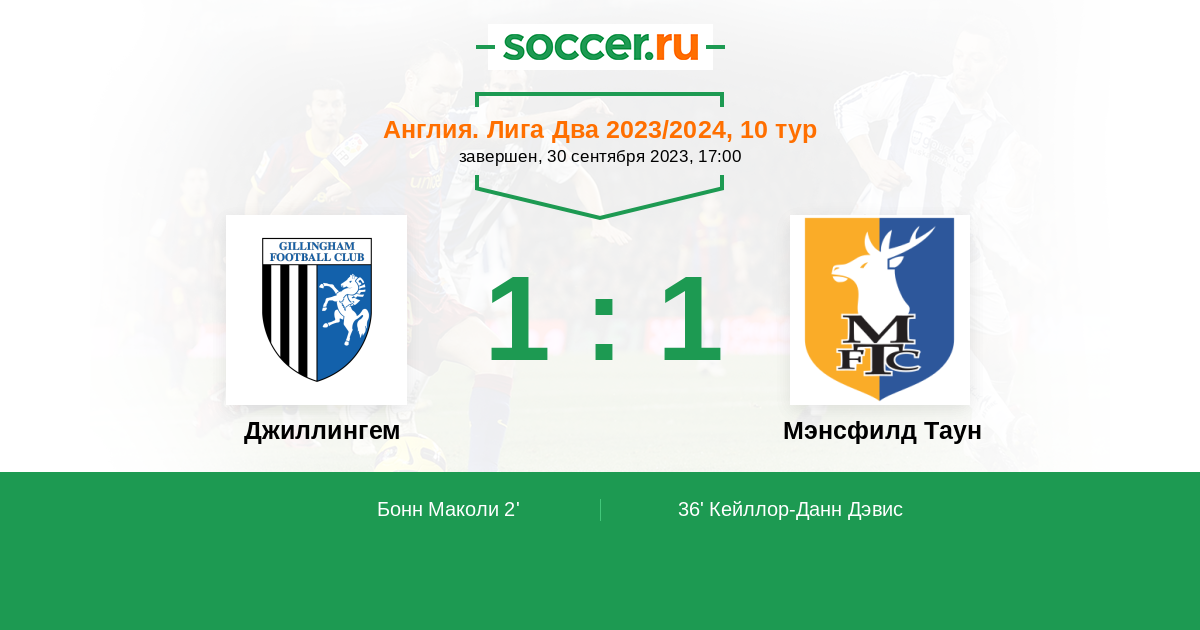 Джиллингем - Мэнсфилд Таун: обзор матча 30 сентября 2023