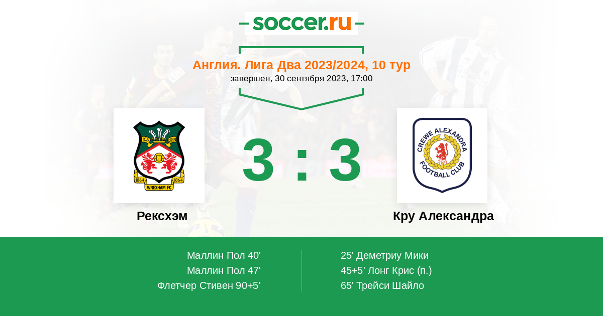 Рексхэм - Кру Александра: обзор матча 30 сентября 2023
