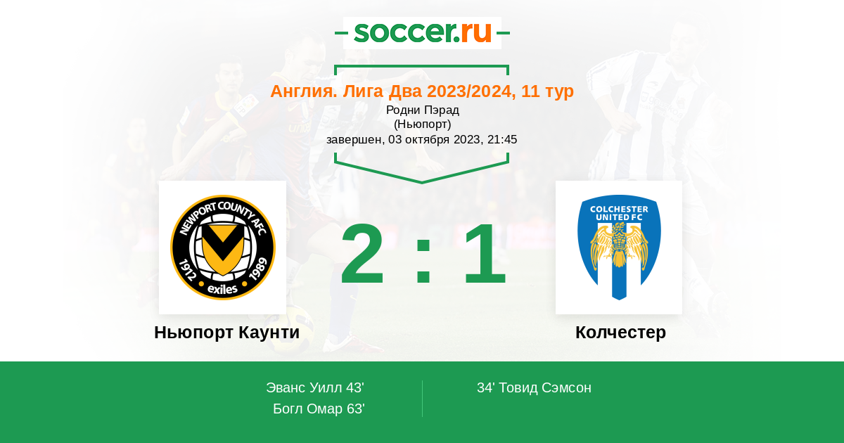 Ньюпорт Каунти - Колчестер: обзор матча 3 октября 2023