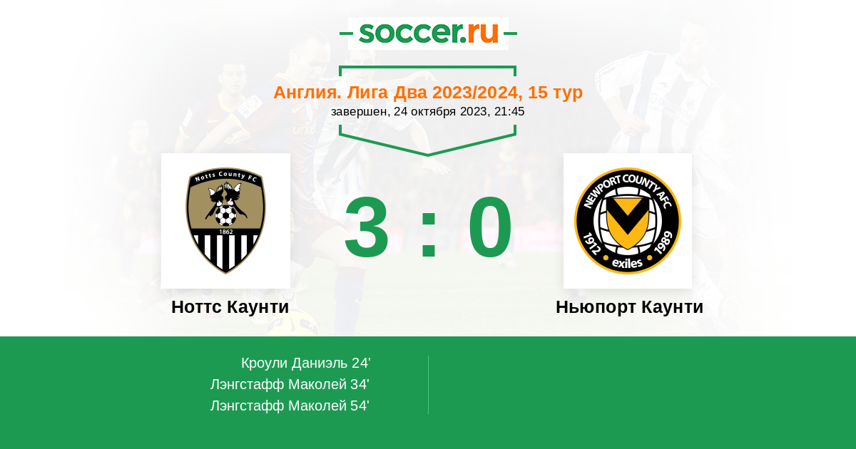 Ноттс Каунти - Ньюпорт Каунти: обзор матча 24 октября 2023