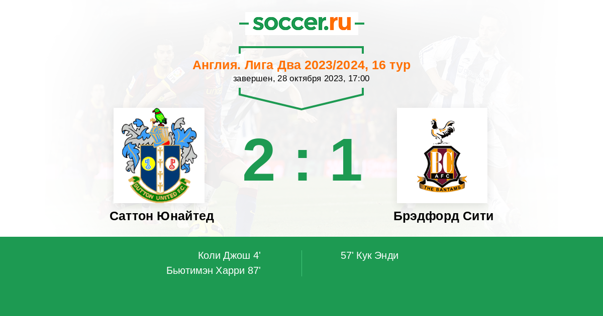 Саттон Юнайтед - Брэдфорд Сити: обзор матча 28 октября 2023