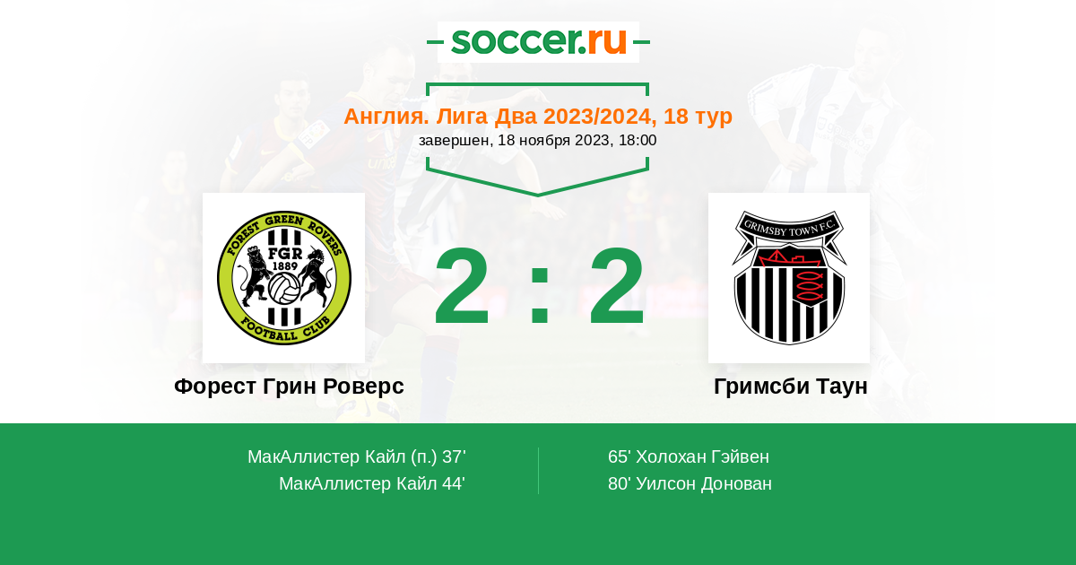 Форест Грин Роверс - Гримсби Таун: обзор матча 18 ноября 2023