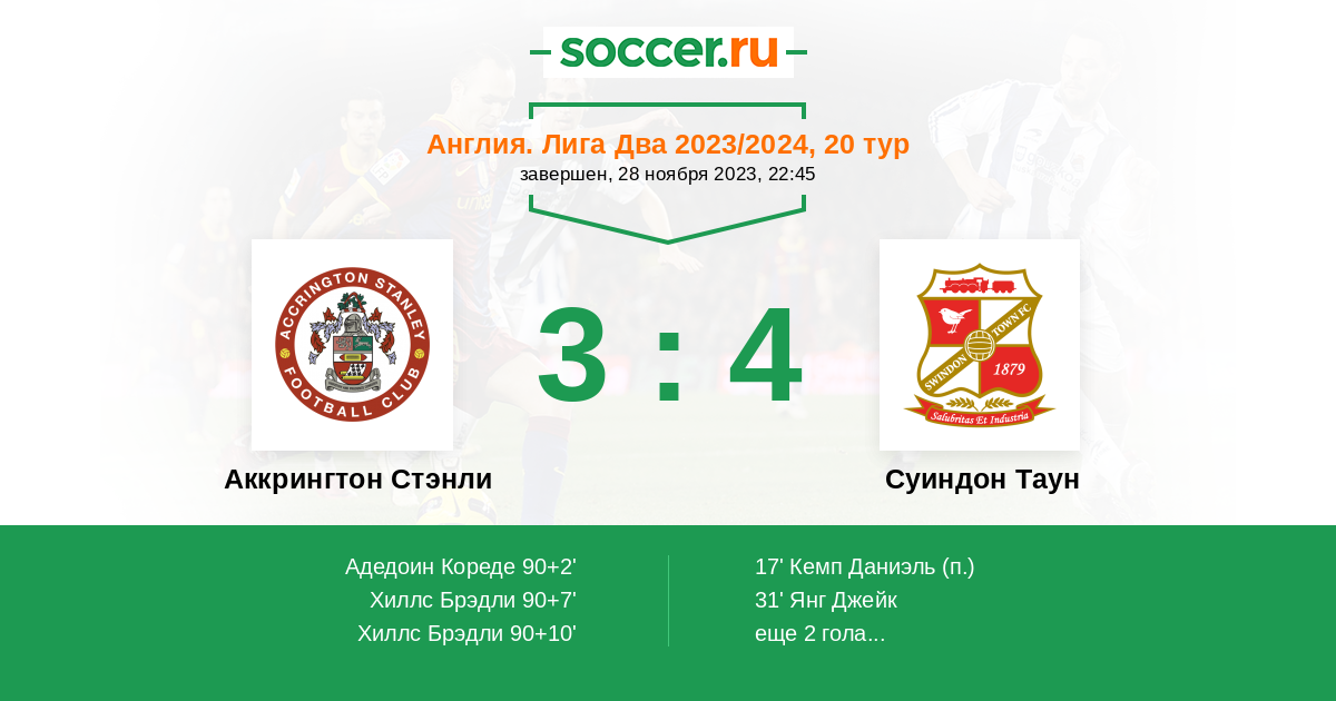 Аккрингтон Стэнли - Суиндон Таун: обзор матча 28 ноября 2023