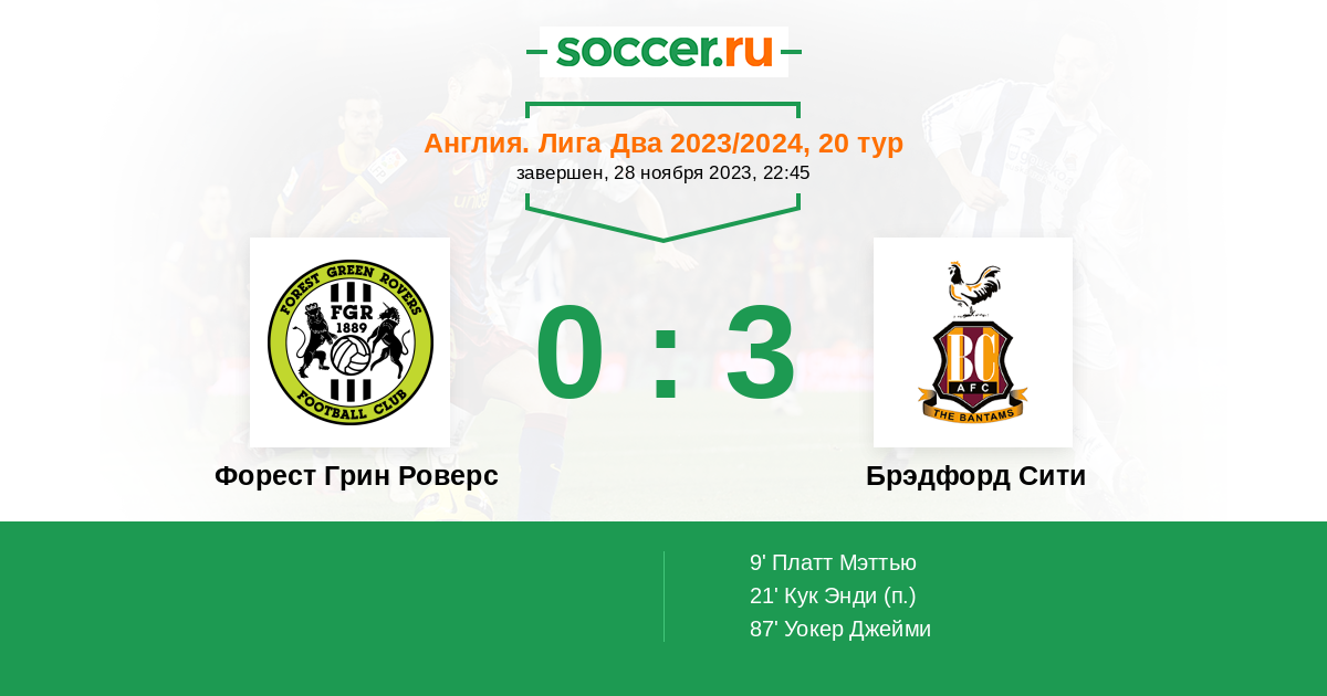 Форест Грин Роверс - Брэдфорд Сити: обзор матча 28 ноября 2023
