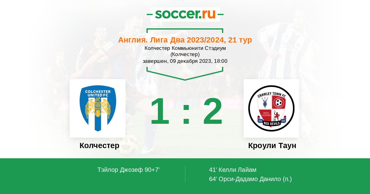 Колчестер - Кроули Таун: обзор матча 9 декабря 2023