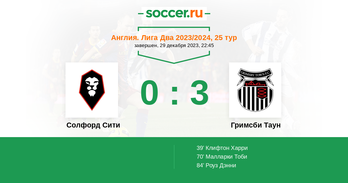 Солфорд Сити - Гримсби Таун: обзор матча 29 декабря 2023