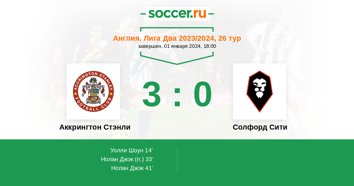 Аккрингтон Стэнли - Солфорд Сити: обзор матча 1 января 2024