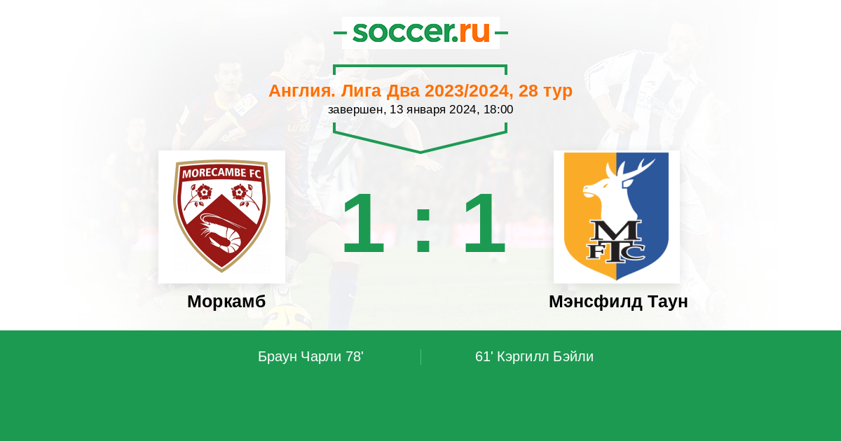 Моркамб - Мэнсфилд Таун: обзор матча 13 января 2024