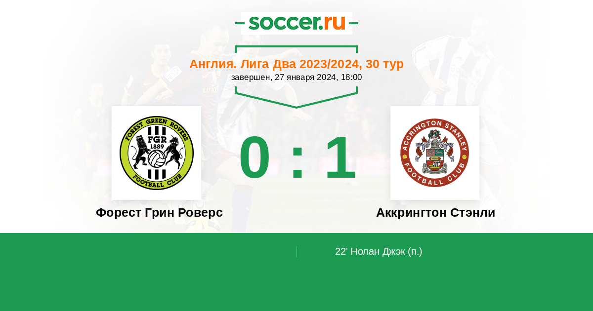 Форест Грин Роверс - Аккрингтон Стэнли: обзор матча 27 января 2024