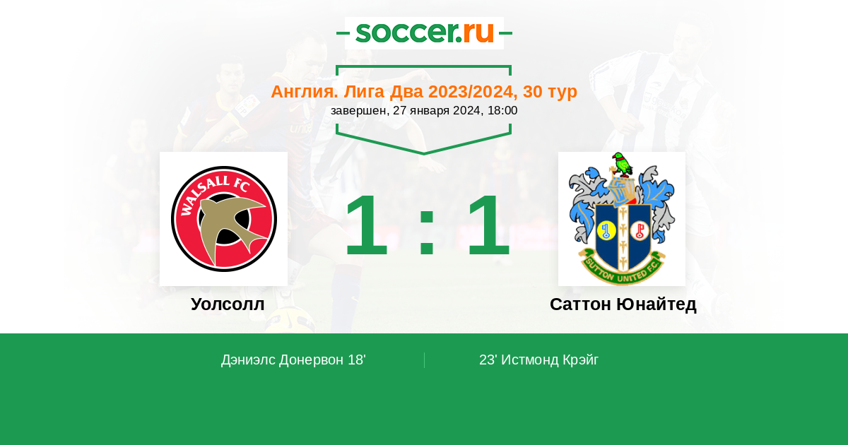 Уолсолл - Саттон Юнайтед: обзор матча 27 января 2024