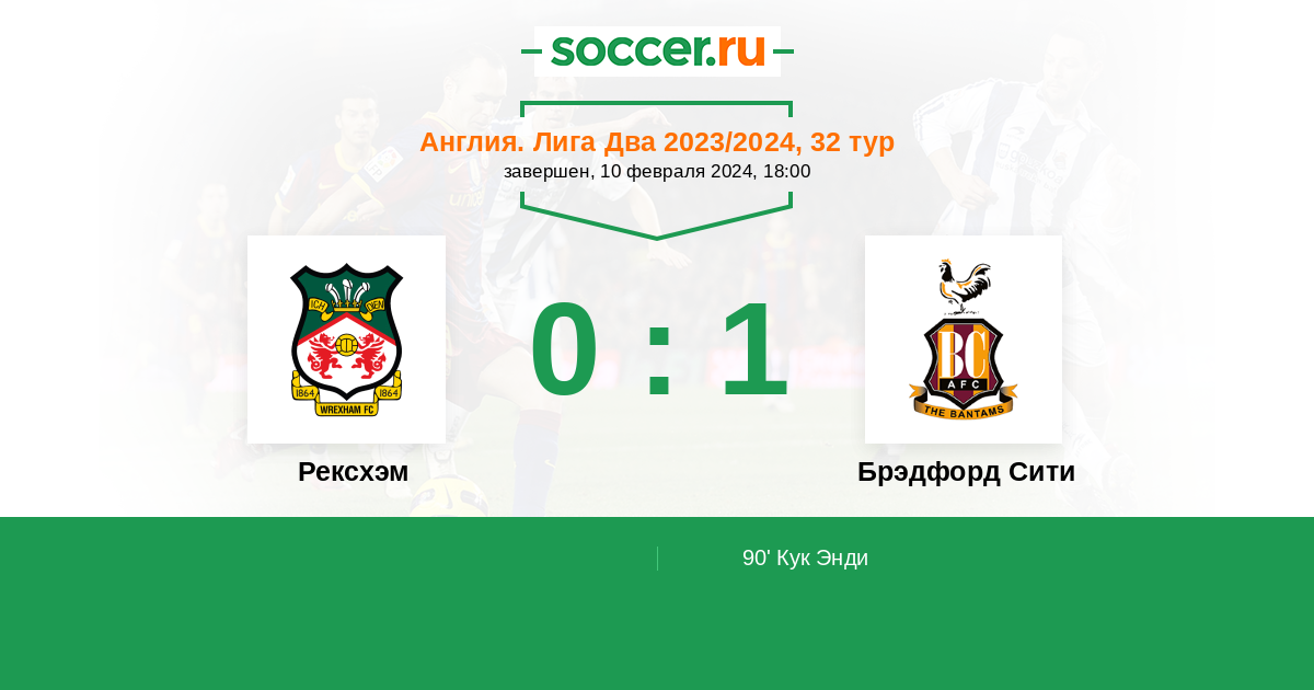 Рексхэм - Брэдфорд Сити: обзор матча 10 февраля 2024