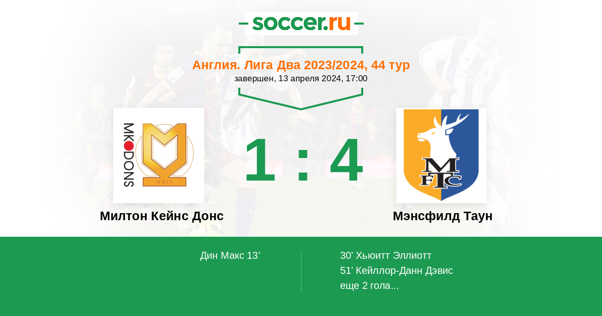 Милтон Кейнс Донс - Мэнсфилд Таун: обзор матча 13 апреля 2024