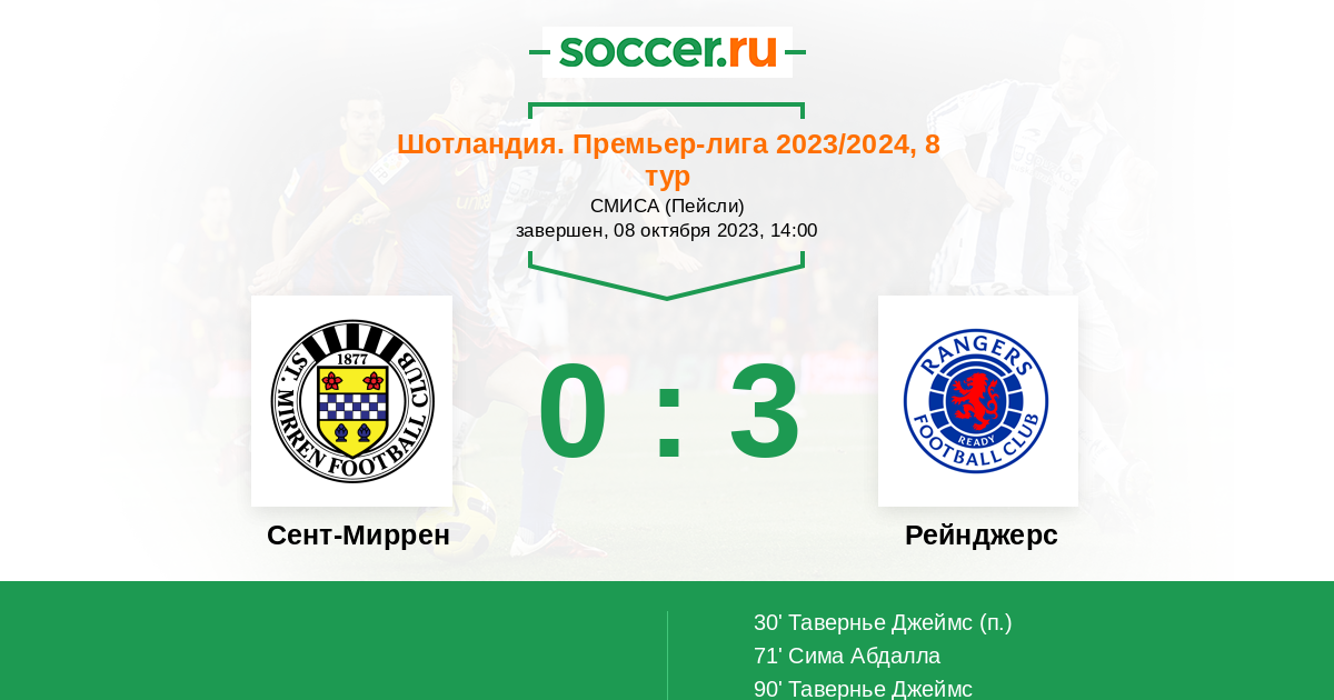 Сент-Миррен - Рейнджерс: обзор матча 8 октября 2023