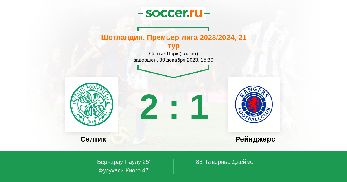 Селтик - Рейнджерс: обзор матча 30 декабря 2023