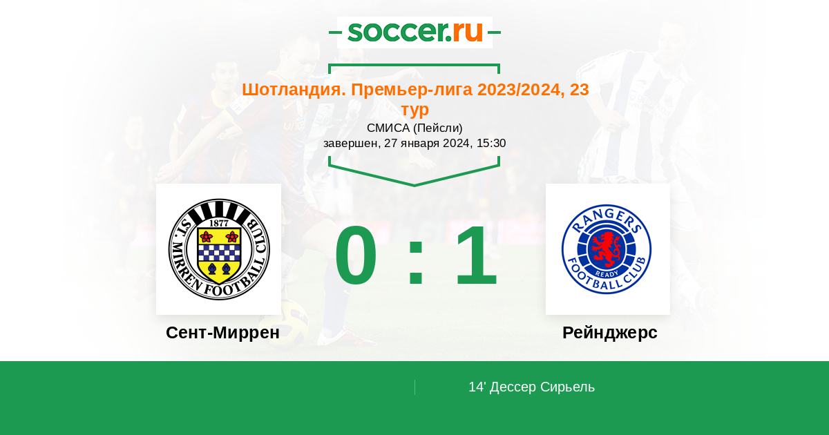 Сент-Миррен - Рейнджерс: обзор матча 27 января 2024