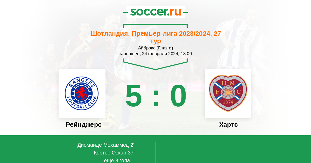 Рейнджерс - Хартс: обзор матча 24 февраля 2024