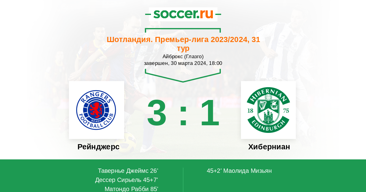 Рейнджерс - Хиберниан: обзор матча 30 марта 2024