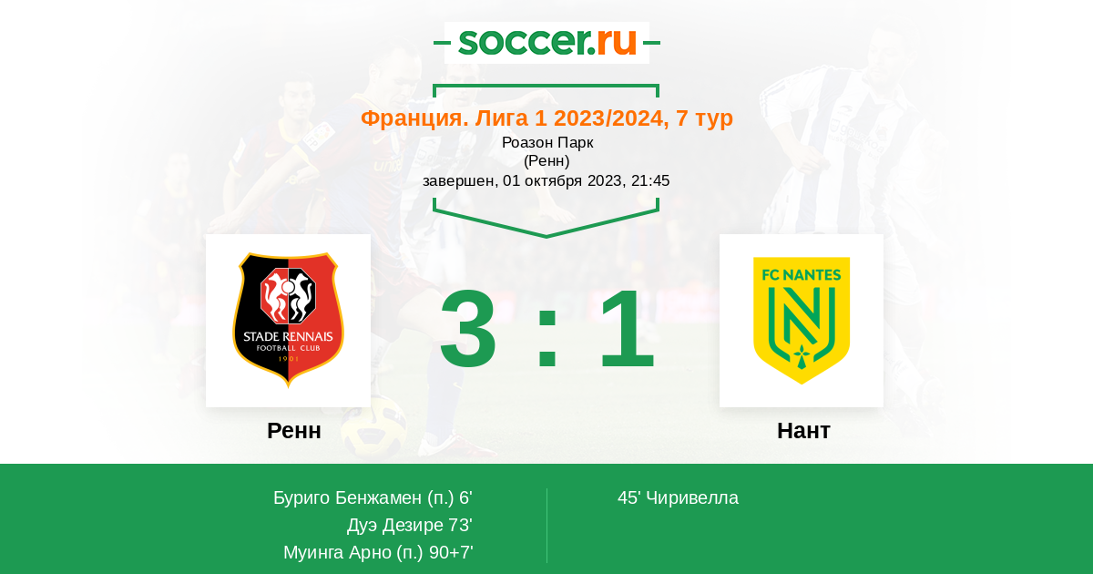 Ренн - Нант: обзор матча 1 октября 2023