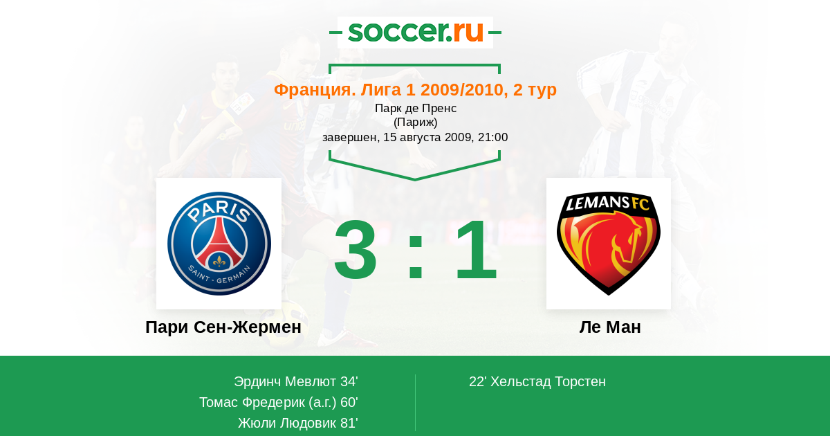 Пари Сен-Жермен - Ле Ман: обзор матча 15 августа 2009