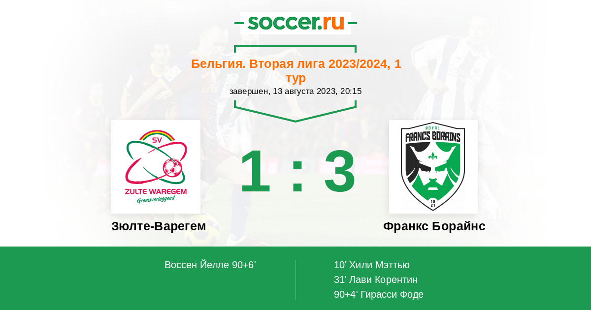 Зюлте-Варегем - Франкс Борайнс: обзор матча 13 августа 2023