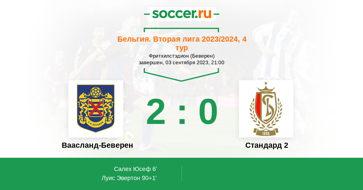 Ваасланд-Беверен - Стандард 2: обзор матча 3 сентября 2023