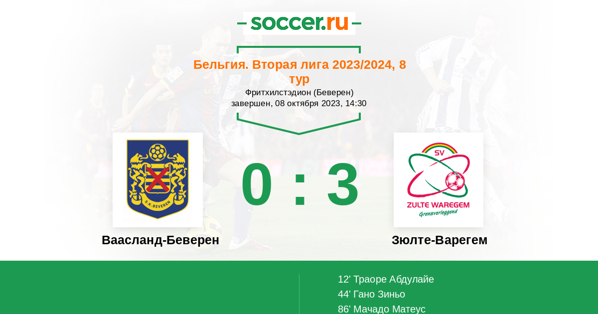 Ваасланд-Беверен - Зюлте-Варегем: обзор матча 8 октября 2023