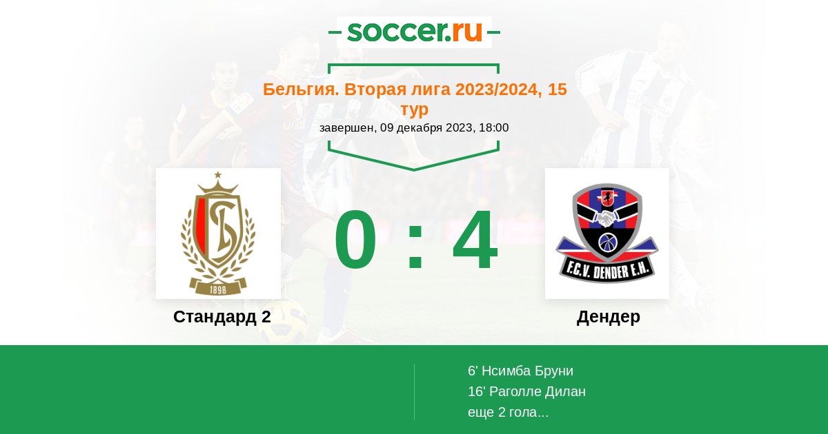 Стандард 2 - Дендер: обзор матча 9 декабря 2023
