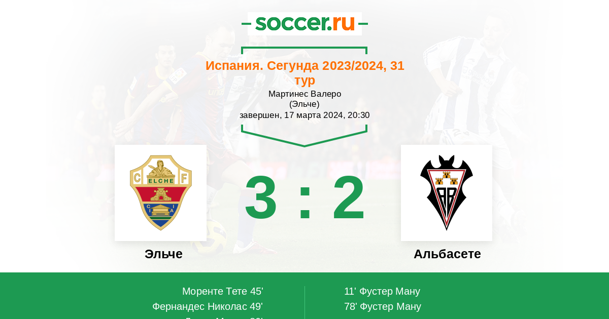 Эльче - Альбасете: обзор матча 17 марта 2024