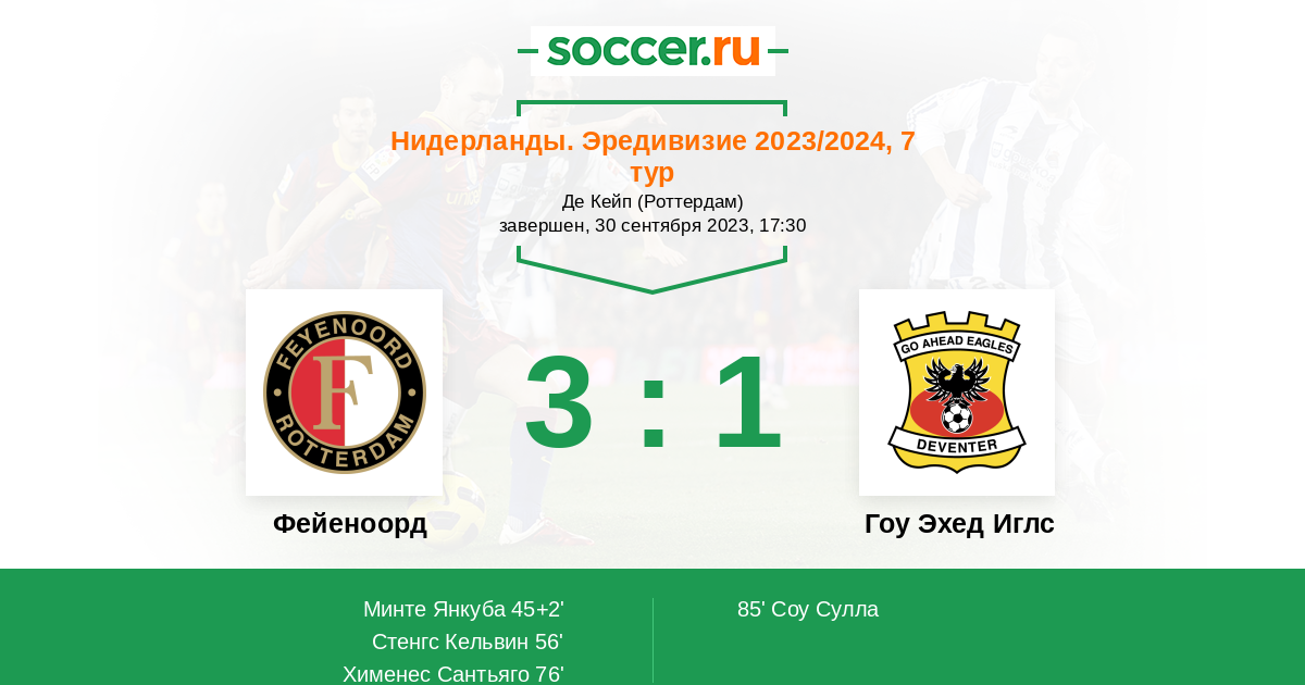 Фейеноорд - Гоу Эхед Иглс: обзор матча 30 сентября 2023
