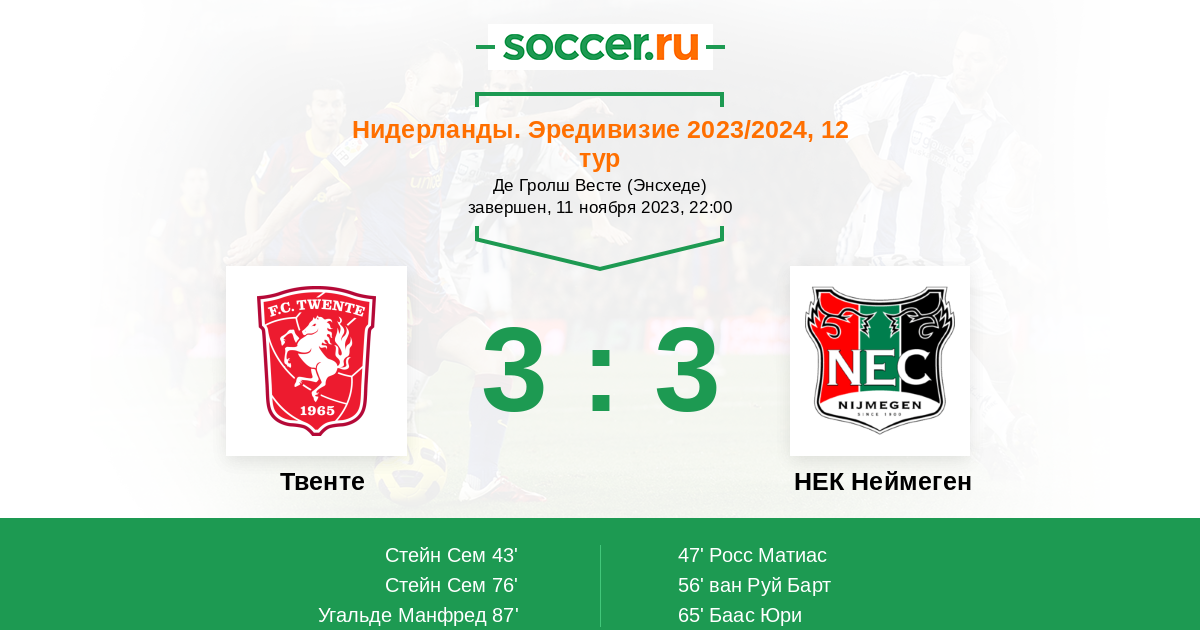 Твенте - НЕК Неймеген: обзор матча 11 ноября 2023