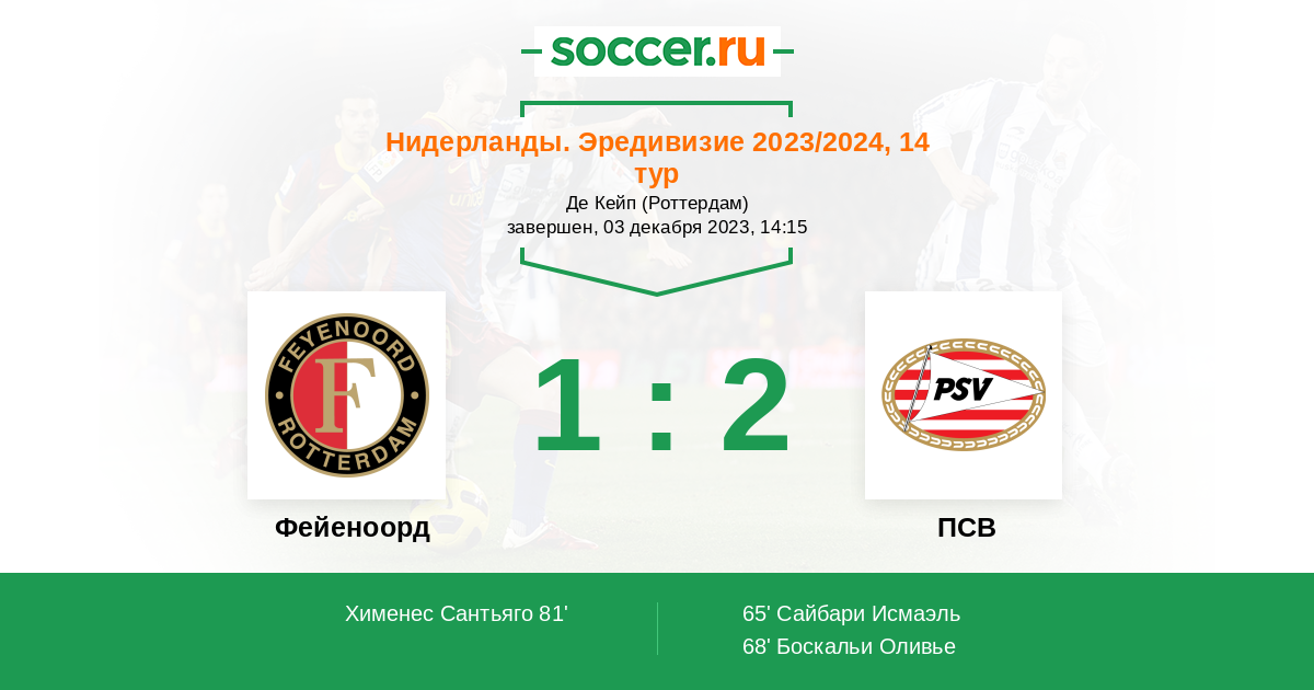 Фейеноорд - ПСВ: обзор матча 3 декабря 2023