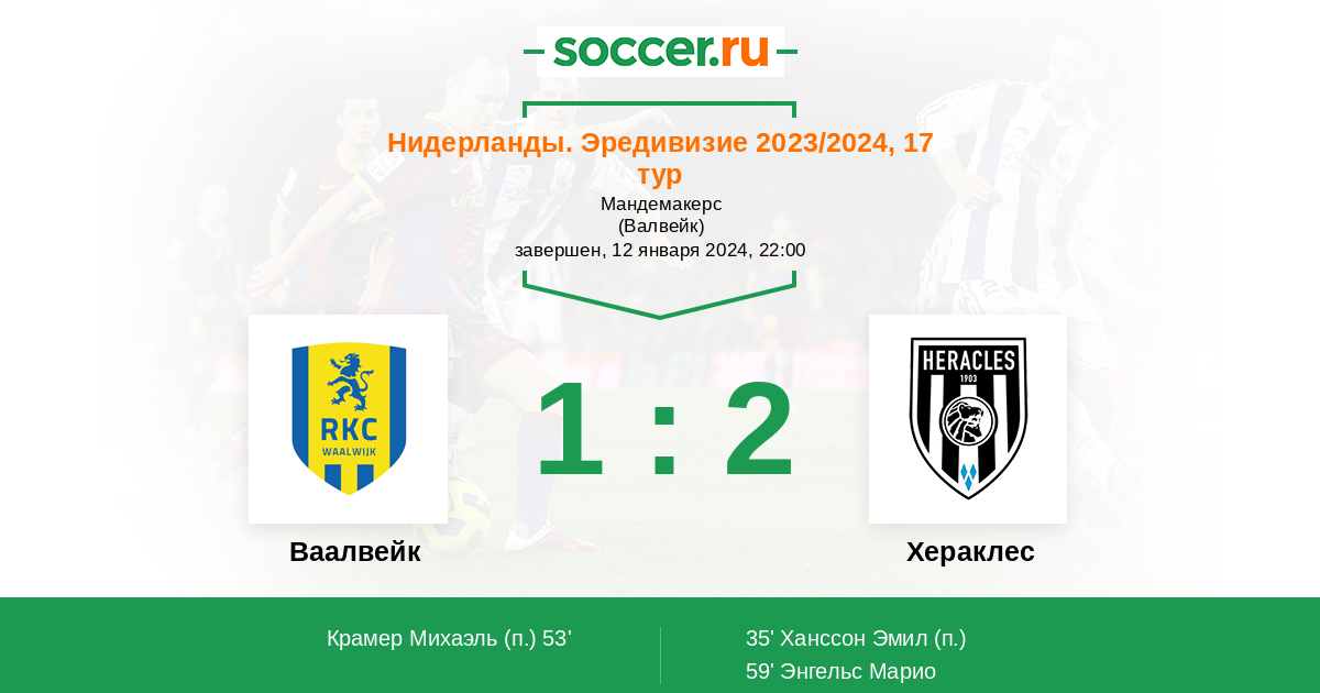Ваалвейк - Хераклес: обзор матча 12 января 2024