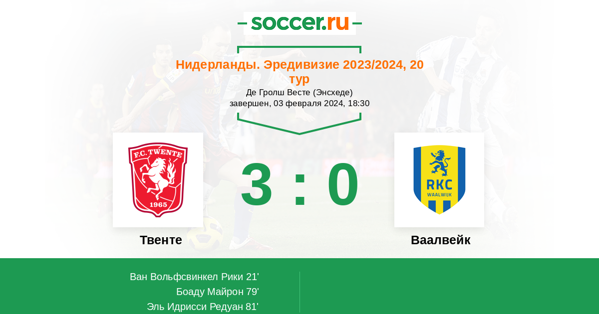 Твенте - Ваалвейк: обзор матча 3 февраля 2024