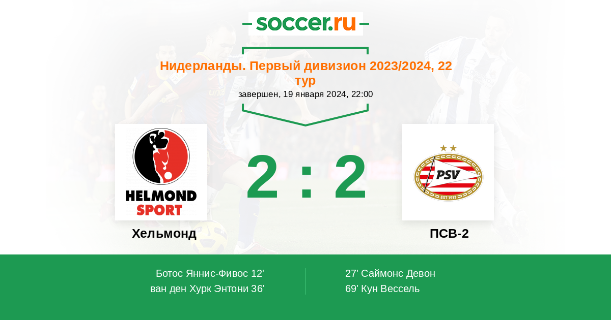 Хельмонд - ПСВ-2: обзор матча 19 января 2024