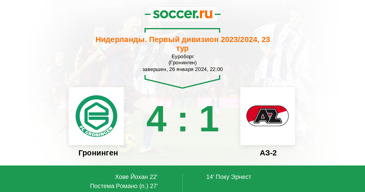 Гронинген - АЗ-2: обзор матча 26 января 2024