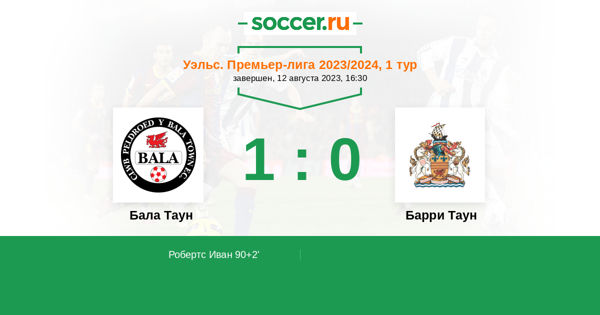 Бала Таун - Барри Таун: обзор матча 12 августа 2023