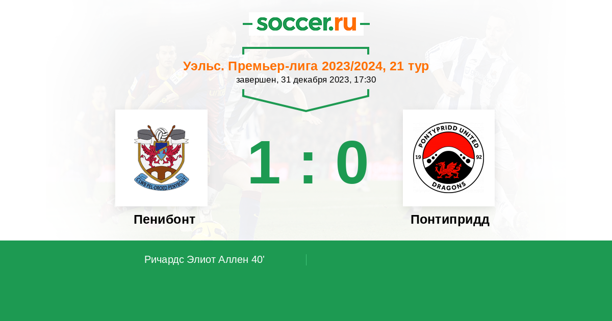 Пенибонт - Понтипридд: обзор матча 31 декабря 2023