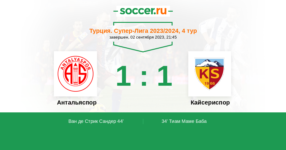 Антальяспор - Кайсериспор: обзор матча 2 сентября 2023