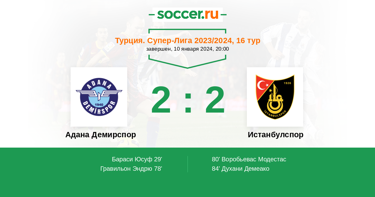 Адана Демирспор - Истанбулспор: обзор матча 10 января 2024