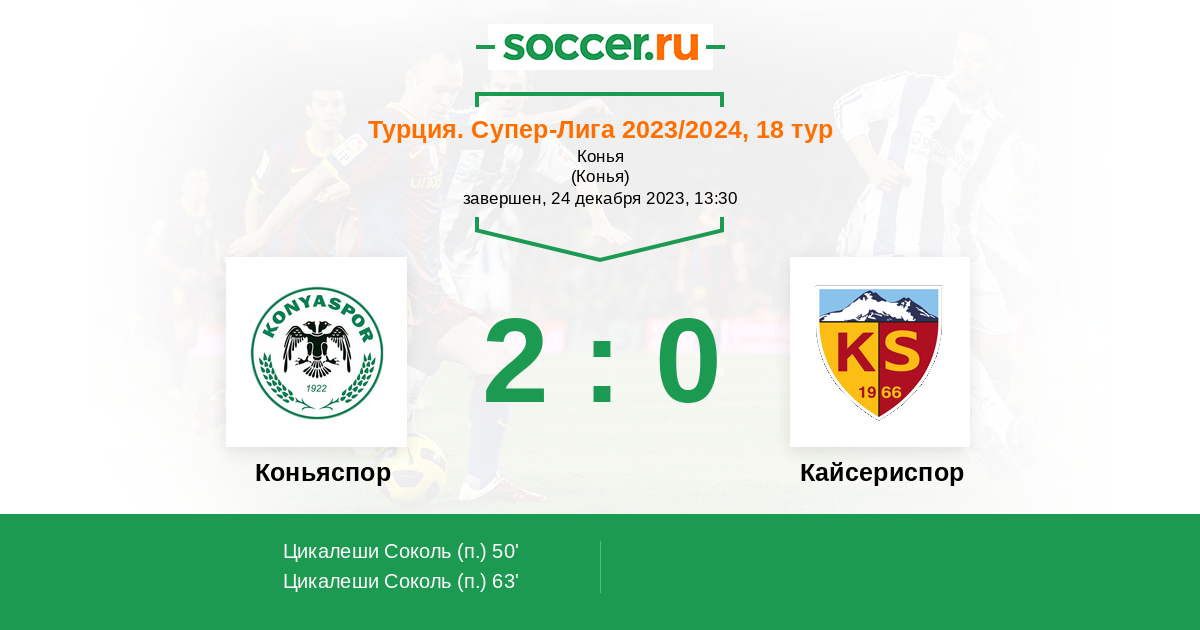 Коньяспор - Кайсериспор: обзор матча 24 декабря 2023