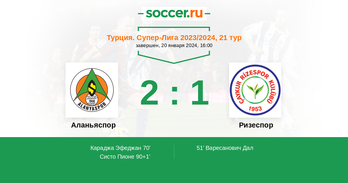 Аланьяспор - Ризеспор: обзор матча 20 января 2024