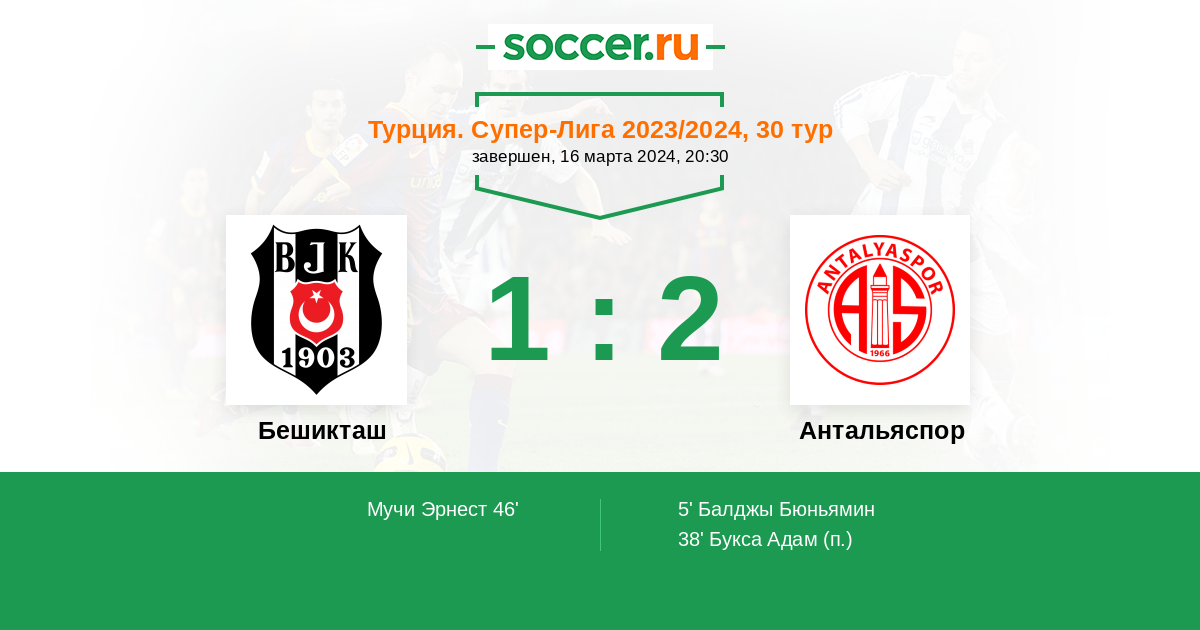 Бешикташ - Антальяспор: обзор матча 16 марта 2024