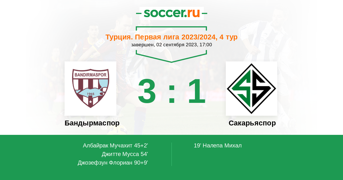 Бандырмаспор - Сакарьяспор: обзор матча 2 сентября 2023