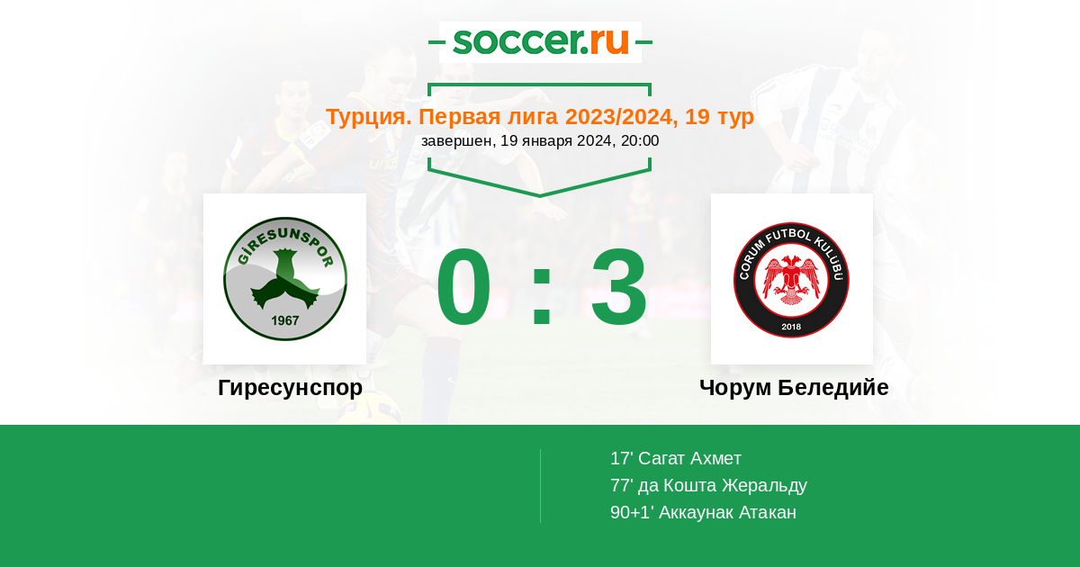 Гиресунспор - Чорум Беледийе: обзор матча 19 января 2024