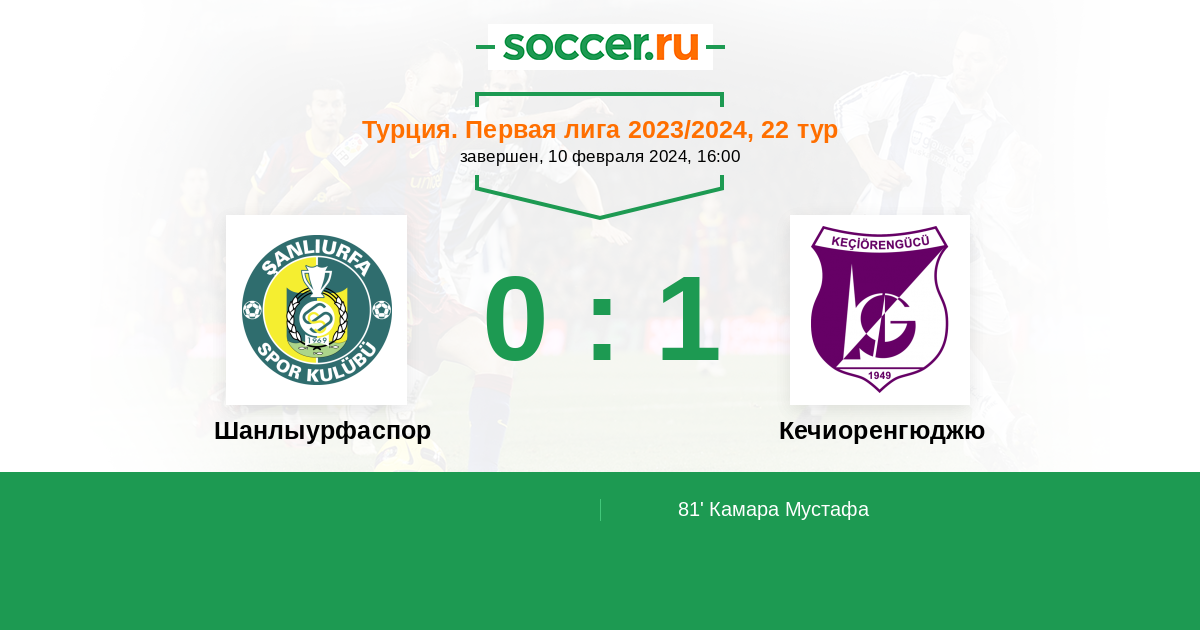 Шанлыурфаспор - Кечиоренгюджю: обзор матча 10 февраля 2024