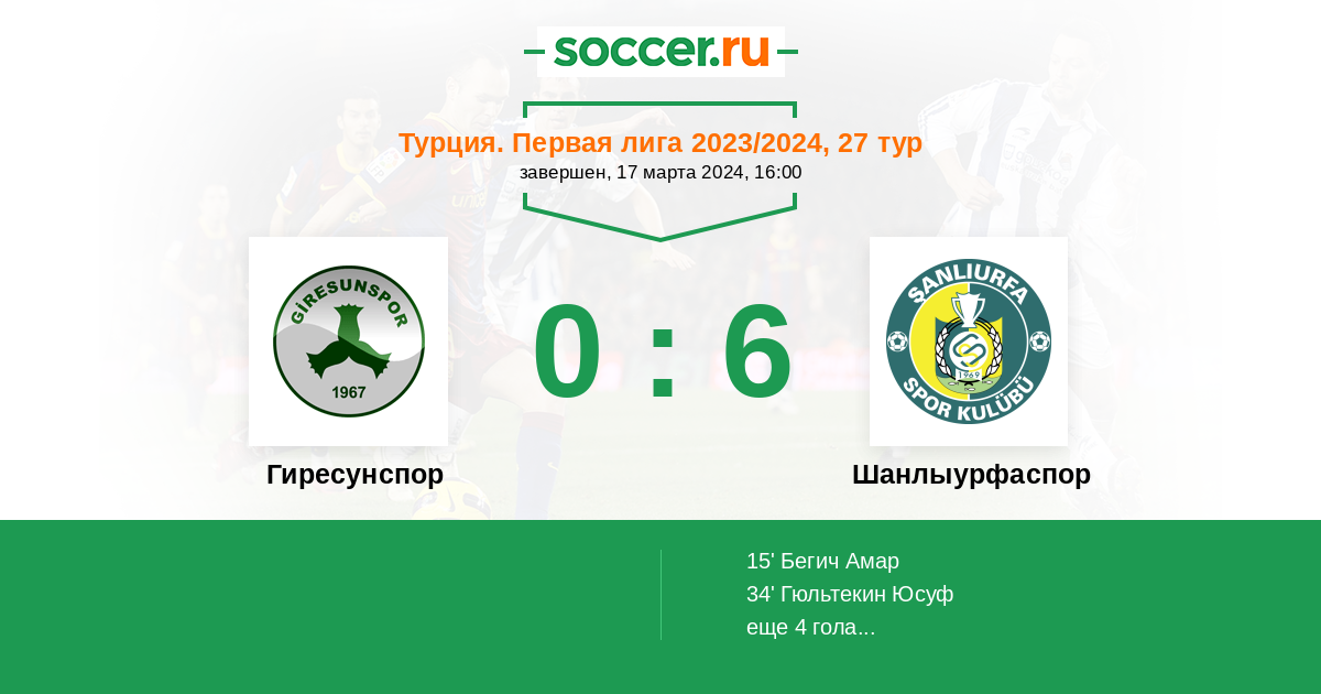Гиресунспор - Шанлыурфаспор: обзор матча 17 марта 2024